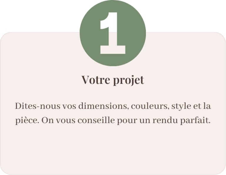 1 - Dites-nous le format, les couleurs, le style et la pièce (salon, chambre…). Même si vous n’êtes pas sûr(e), on vous guide.